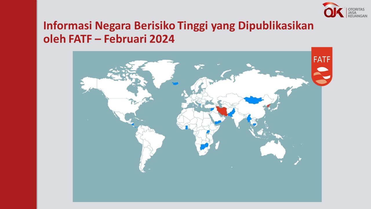 Secara rutin, FATF mempublikasikan informasi negara berisiko tinggi dan tidak kooperatif pada laman resminya. Informasi daftar negara berisiko tinggi sesuai informasi yang dirilis pada Februari 2024 adalah sebagai berikut: