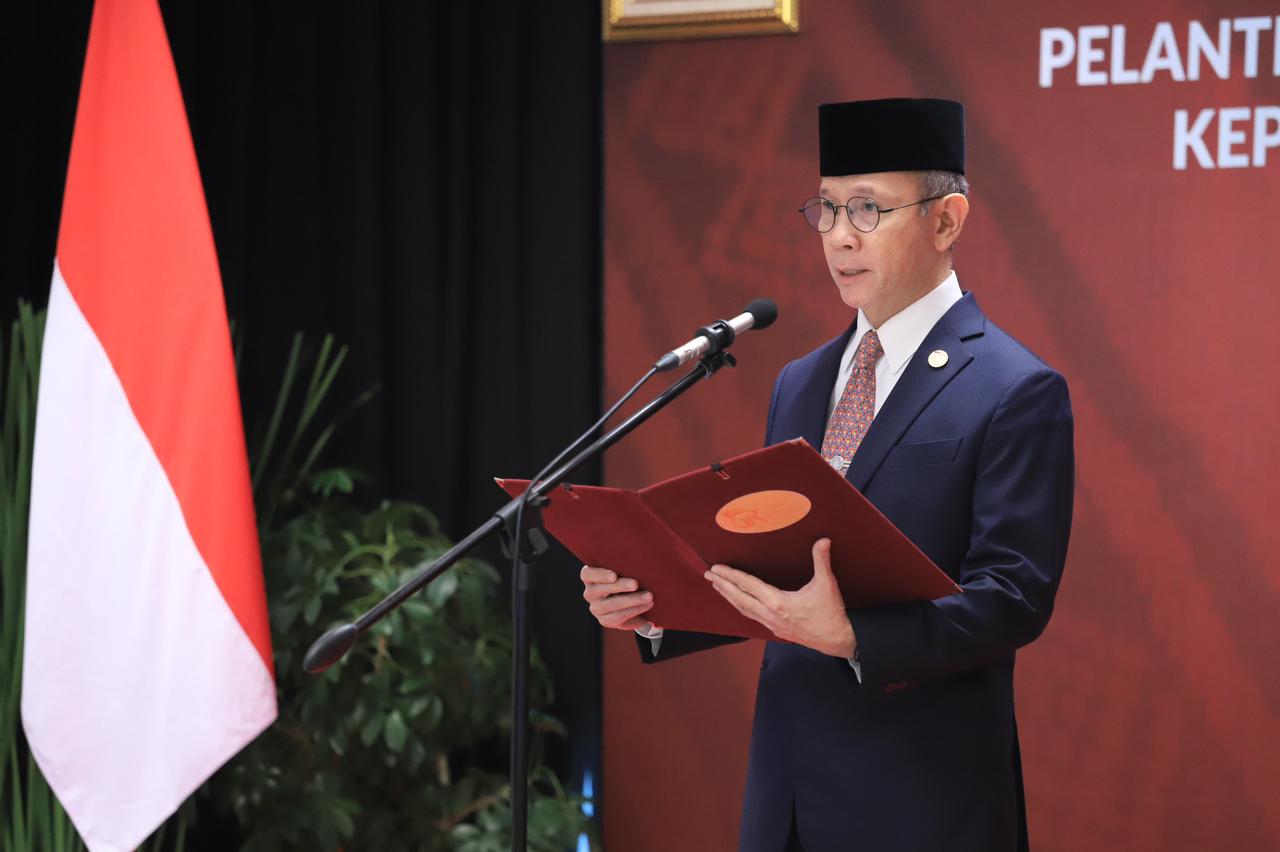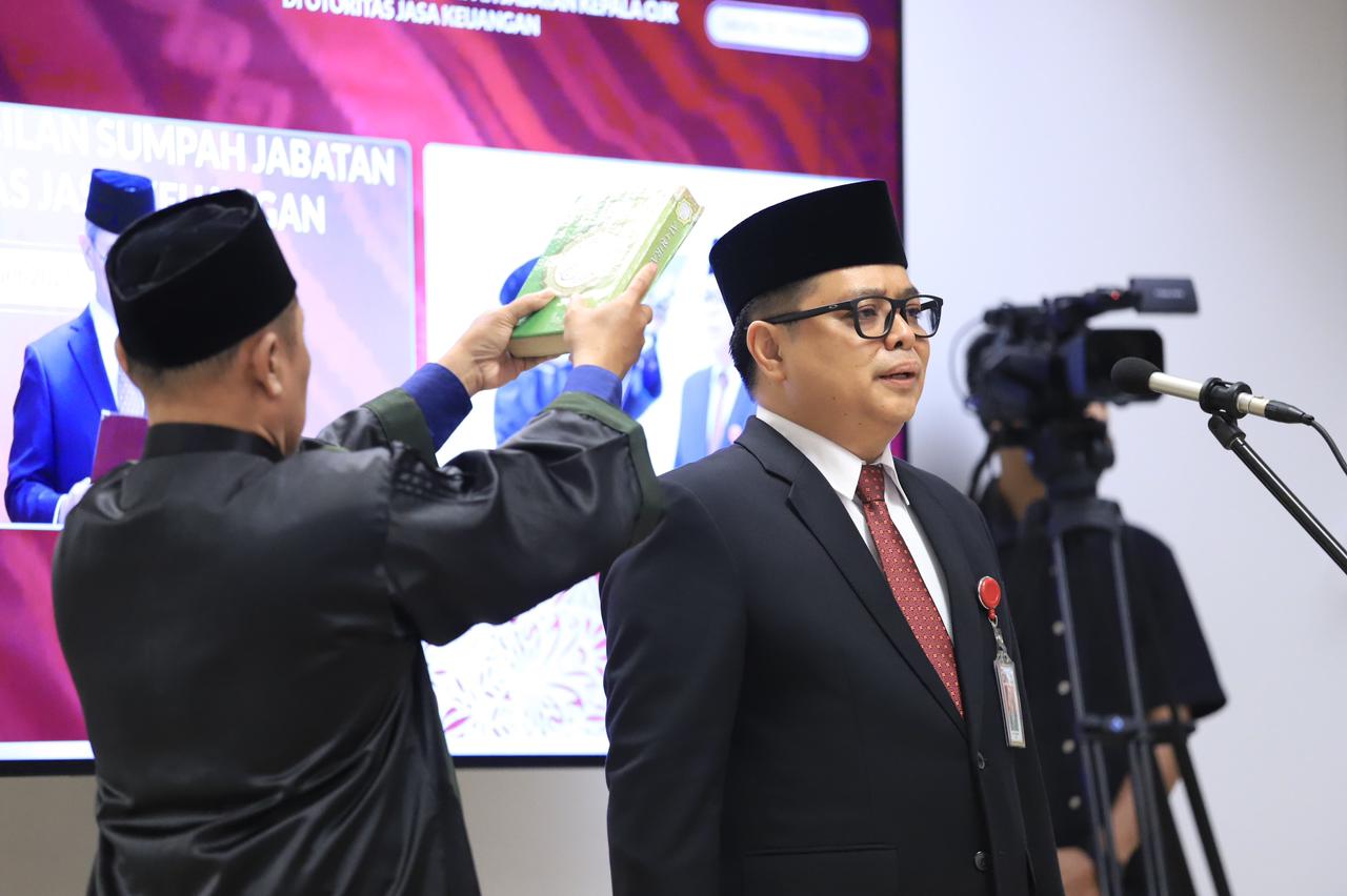 Chairman of OJK Board of Commissioners Mahendra Siregar inaugurated and witness the oath taking of the new Head of OJK North Maluku Provincial Office Adi Surahmat at OJK Office - Wisma Mulia, Jakarta, Fri (10/10).