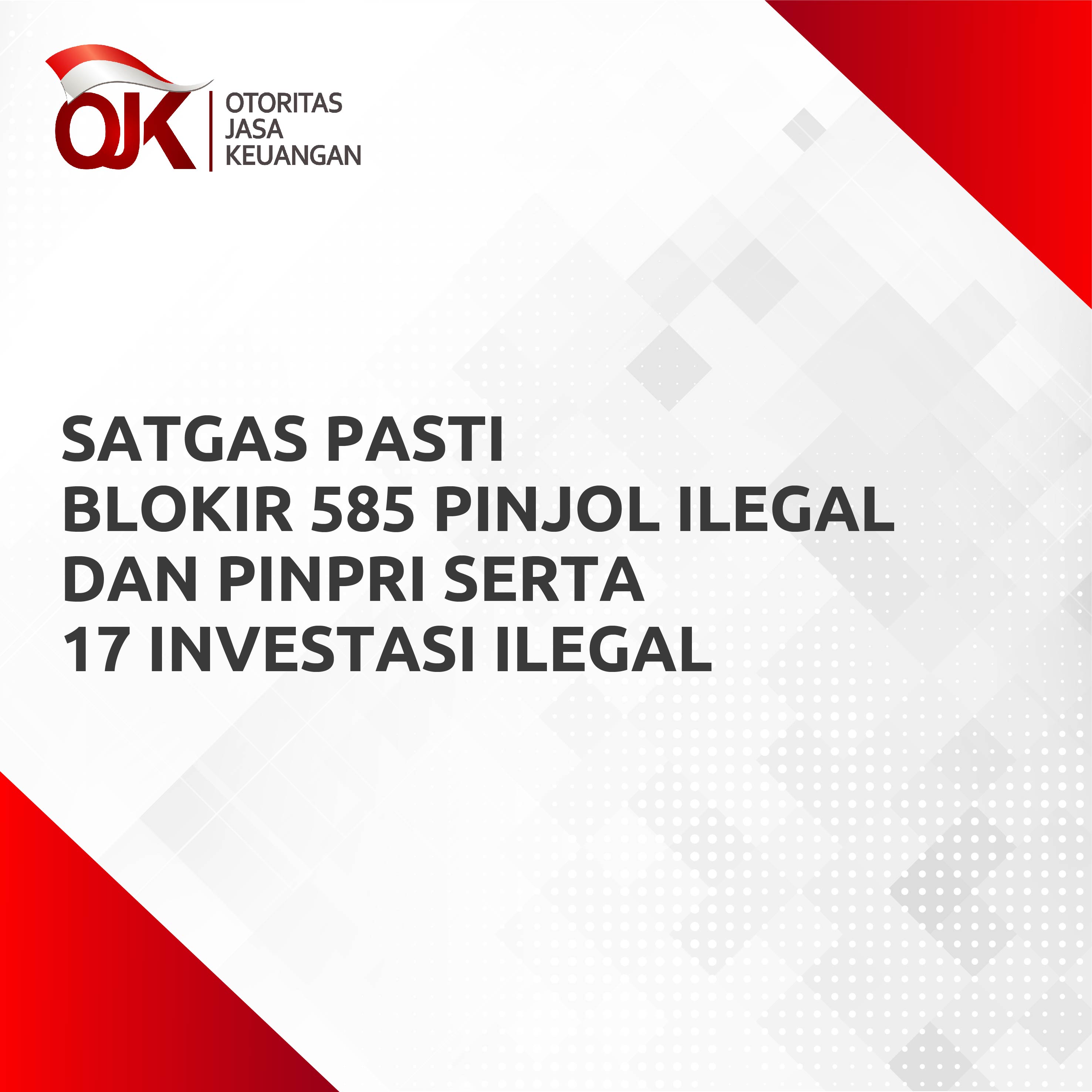 Sejak 2017 s.d. 31 Maret 2024, Satgas telah menghentikan 9.062 entitas keuangan ilegal yang terdiri dari 1.235 entitas investasi ilegal, 7.576 entitas pinjaman online ilegal/pinpri, dan 251 entitas gadai ilegal.