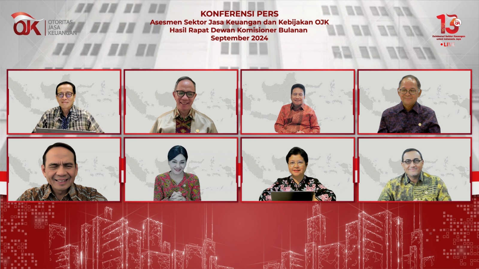 Jakarta, 1 Oktober 2024. Rapat Dewan Komisioner Bulanan Otoritas Jasa Keuangan (OJK) pada 25 September 2024 menilai stabilitas sektor jasa keuangan terjaga stabil dan pasar keuangan menguat di tengah sentimen positif akibat periode cut cycle bank sentral, namun prospek aktivitas perekonomian dunia melemah.